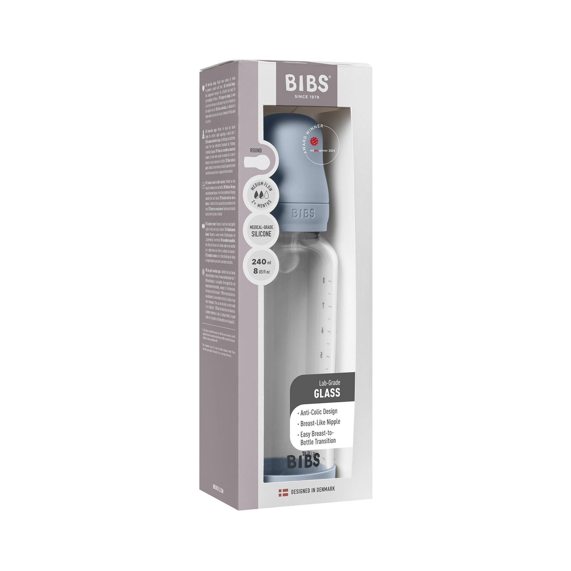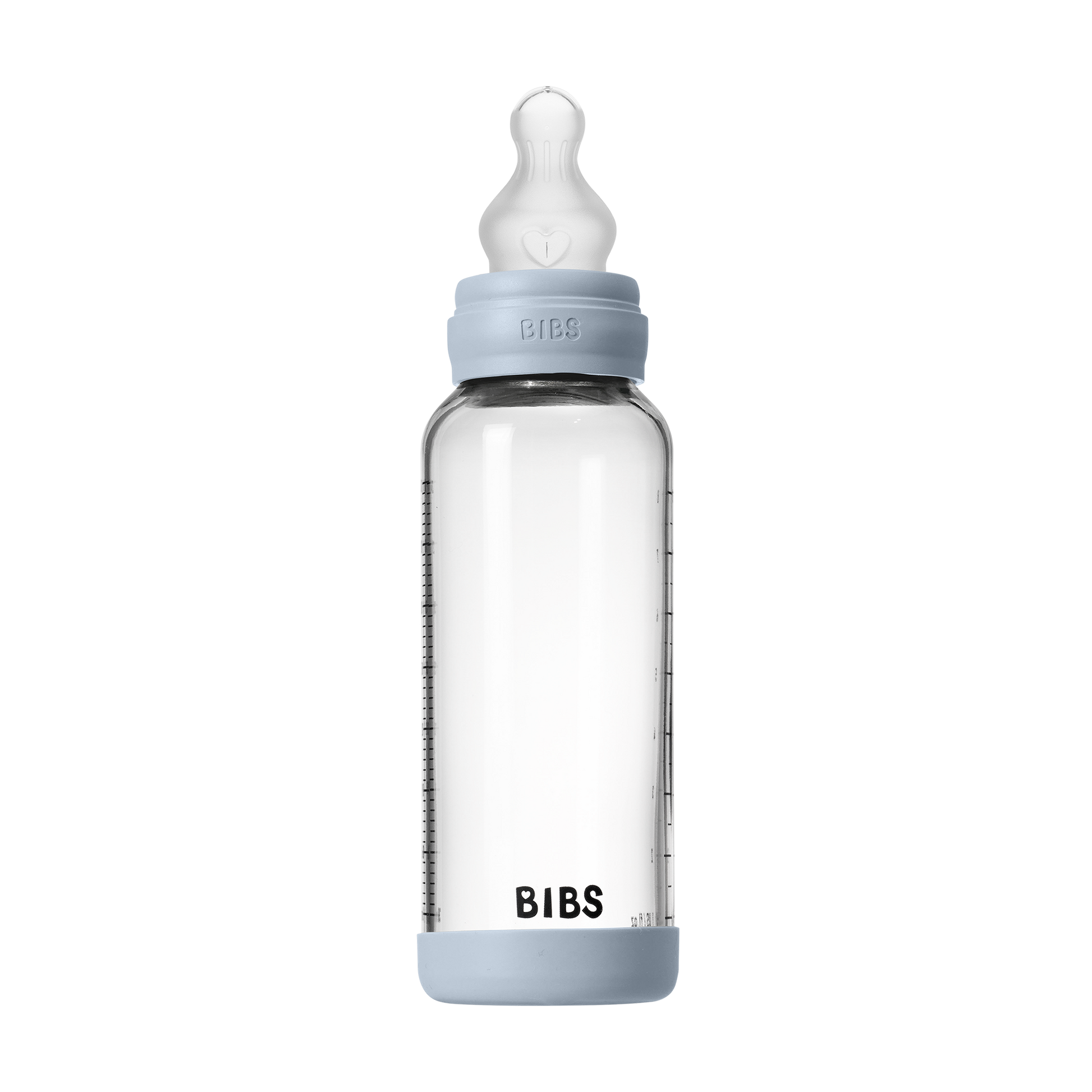 Bibs Baby Glass Bottle Round Silicone - Medium Flow (Colour: Baby Blue | Size: 240ml)