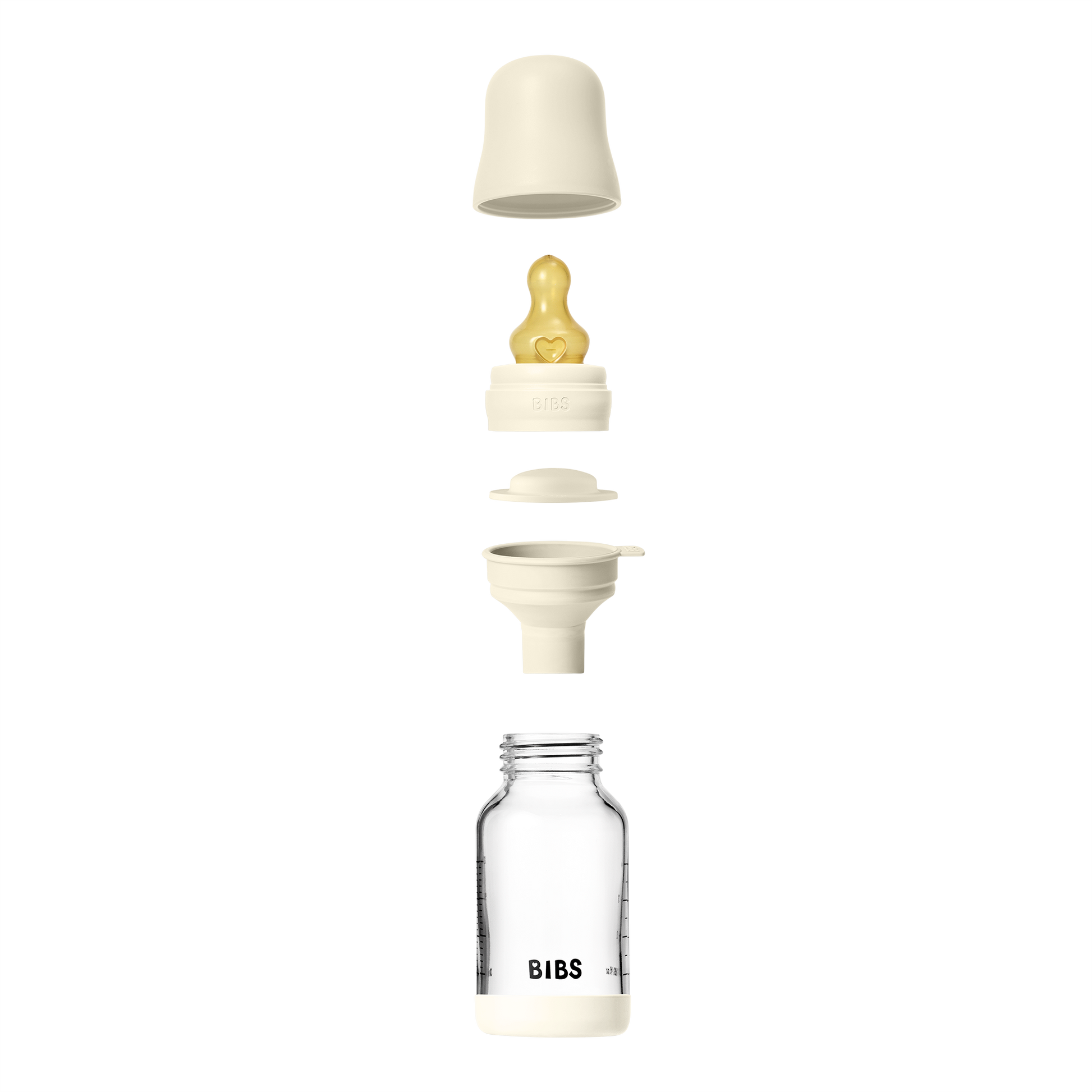 Bibs Glass Baby Bottle Round Latex - Slow Flow (Colour: Ivory | Size: 120ml)