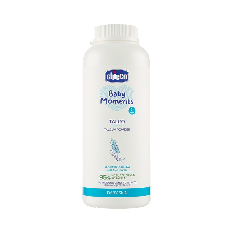 The absorbent property of the formula, rich in rice starch, refreshes and protects baby’ skin. Gentle formula, with 95% naturally derived-ingredients, leaves the skin dry and velvety soft while allowing it to breathe naturally, without clogging pores.