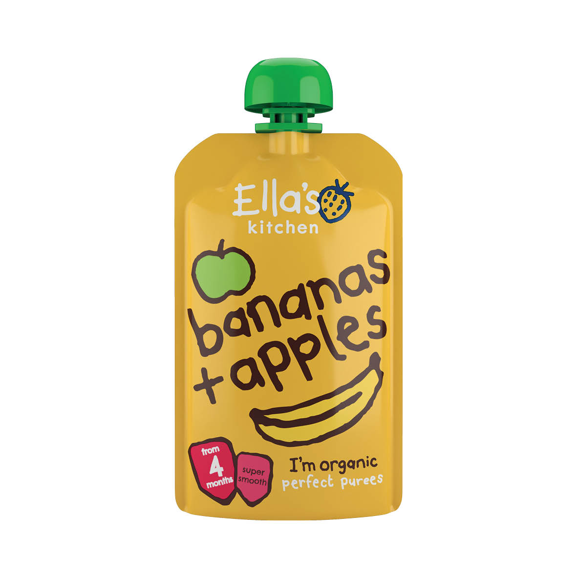 Ella’s Kitchen 4M+ Apples & Bananas: 100% organic pureed apples and bananas with a dash of lemon juice.