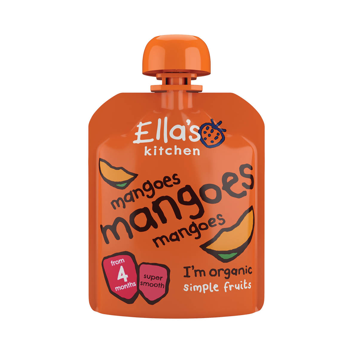Ella’s Kitchen First Taste 4M+ Mangoes Mangoes Mangoes: 100% organic pureed mangoes with a dash of lemon juice – nothing else added, not even water.