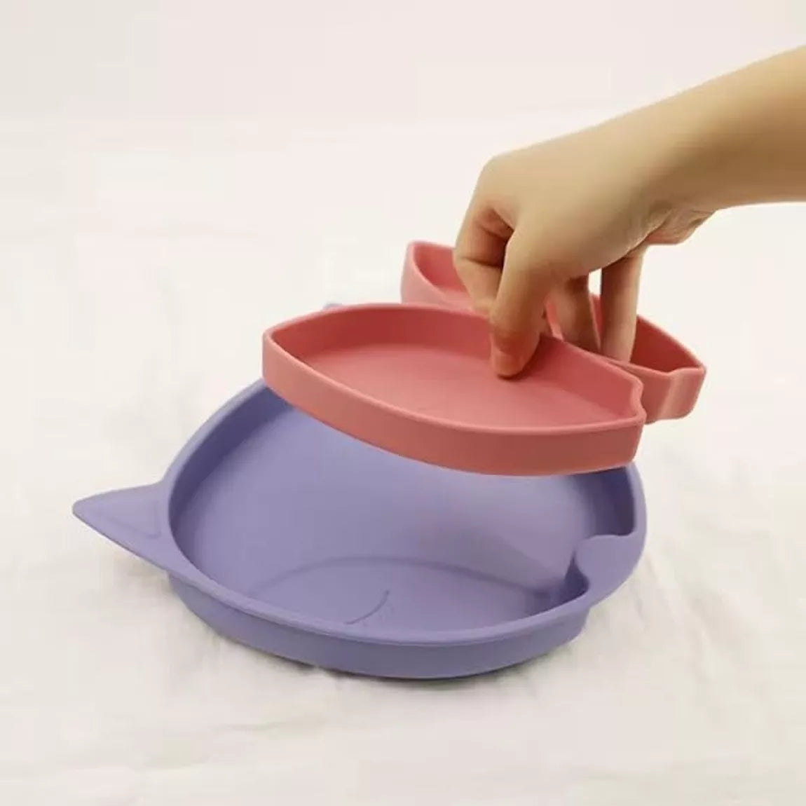 The Malo suction plate includes: a plate that adheres completely to the table with its suction cup to prevent your child from spilling their meal, as well as two removable containers.