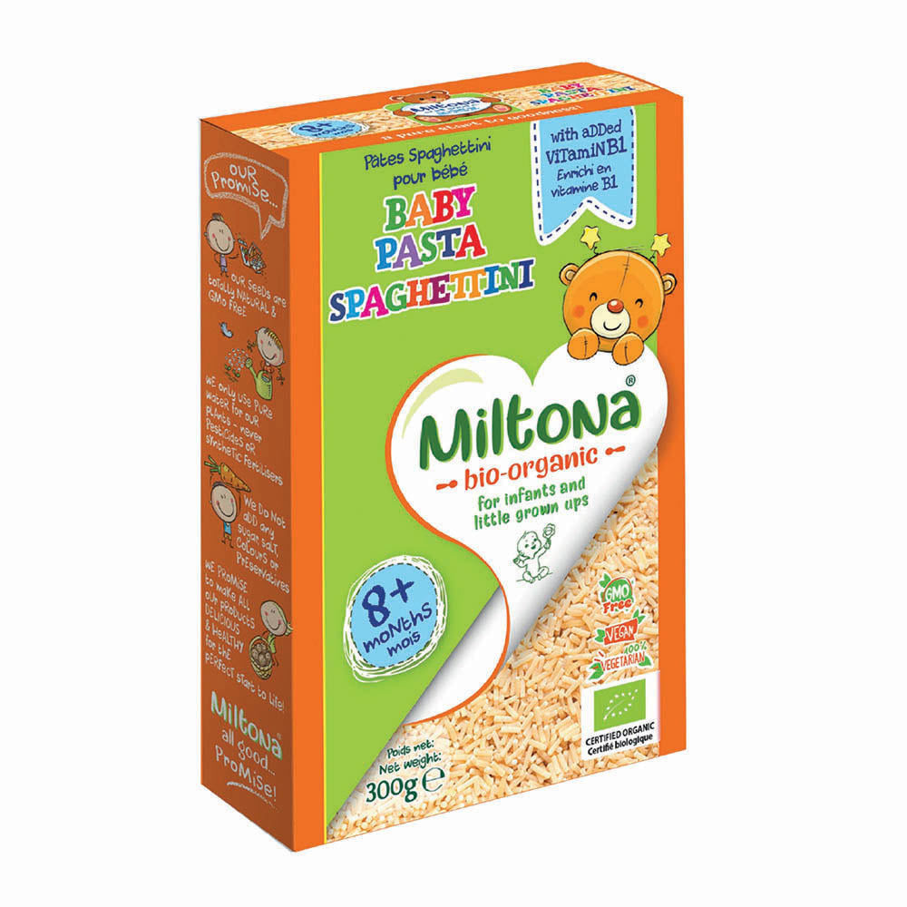Miltona Organic Baby Pasta Spaghettini is made from simple, wholesome ingredients and is suitable for babies and infants aged 8 months and over. Fortified with Vitamins B1.