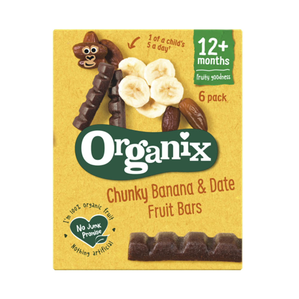 Organix Chunky Banana & Date Fruit Bars are Mutipacks containing 6 individually wrapped bars.