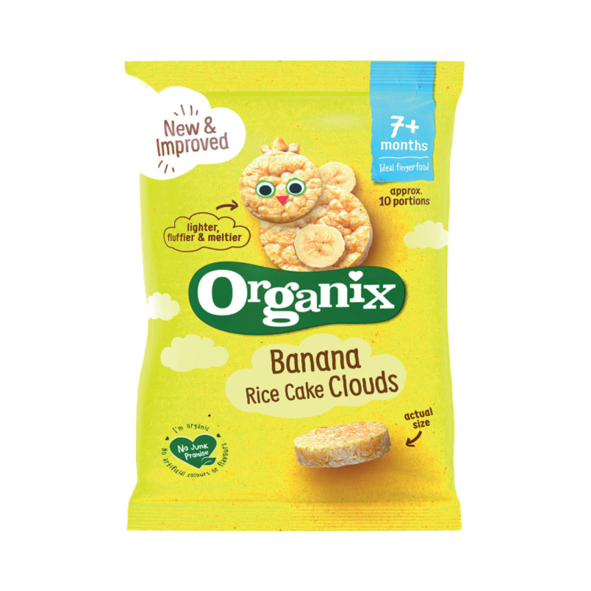 NEW and improved texture! Lighter, fluffier and even meltier for little fingers to grab, hold and munch! Deliciously light and fruity, Organix Banana Rice Cake Clouds are gently puffed into chunky circles, and all we add is the juice from bananas and apples to every one. They’re the ideal first finger food, fun to explore, play and deliciously tasty in every way!