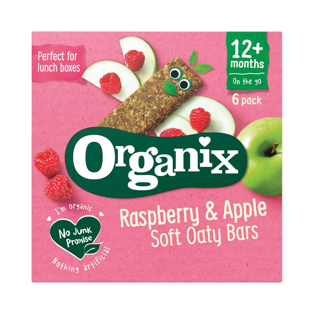 Soft, scrummy and deliciously fruity, Organix organic toddler oat bars with Raspberry & Apple are packed full of real fruit juice, soft raisins and wholegrain oats for toddlers to munch on the go.