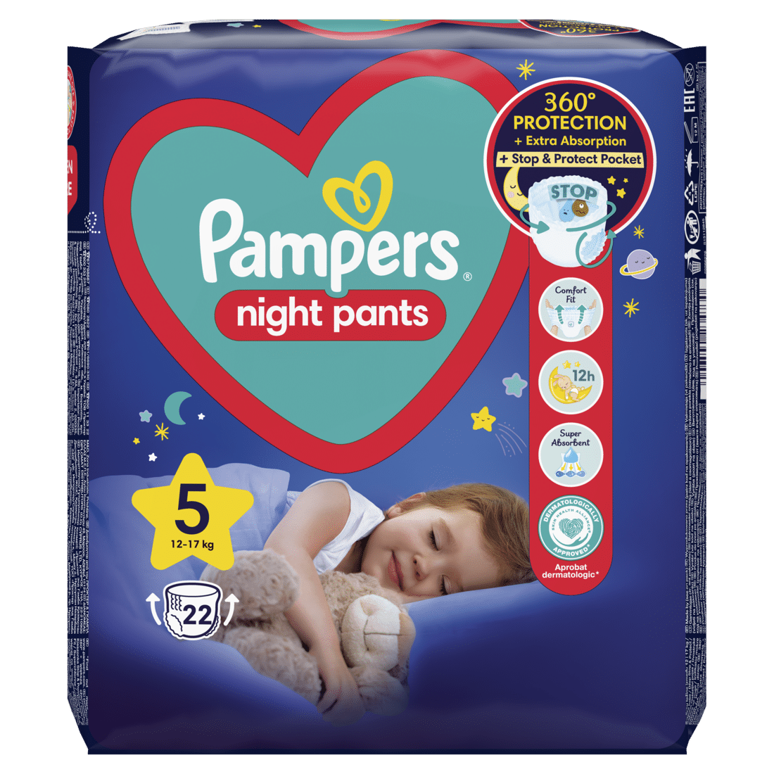 Pampers Night Pants offer better protection at night for a good night’s sleep, thanks to the reinforced core for up to 12 hours of protection against leaks.