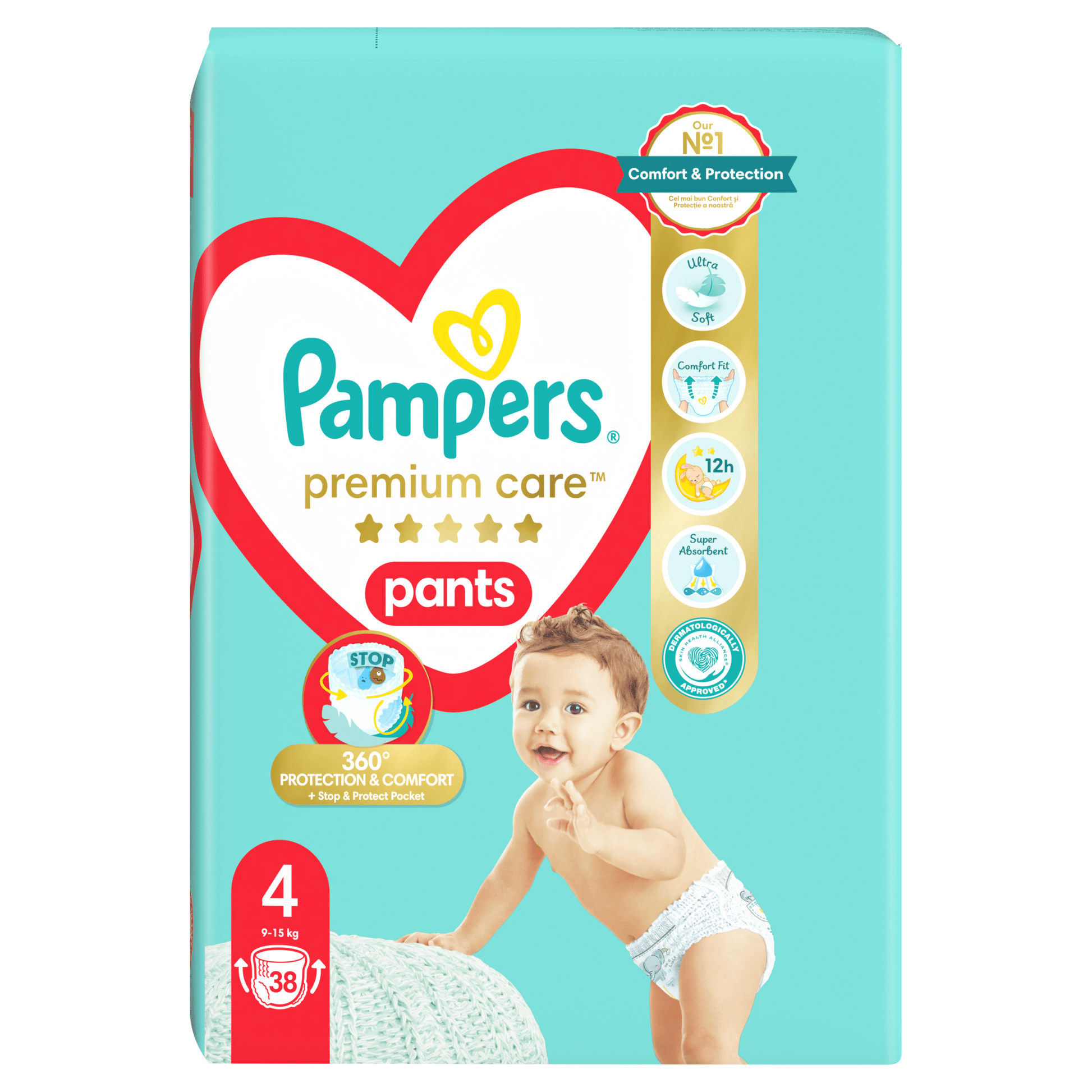 Ensure maximum comfort and protection with Pampers Premium Care Diaper Pants. Featuring a soft and stretchy belt, they go up with just one pull, even when your baby is wriggling around. Equipped with Extra Absorb Channels designed to distribute wetness evenly and lock it away from the baby’s skin, Pampers Premium Care Pants keep your baby comfortable for up to 12 hours. Designed for all-around gentle fit, and made with silky-soft materials, they provide our gentlest touch to the skin, for even more comfortable feeling. Plus, the Disposal Tape secures the diaper for easy disposal, so you can now say goodbye to fussy diaper changes. Pampers range – which incorporates innovative German technology, ensure that leakage is one less thing for you to worry about when it comes to your active little one.