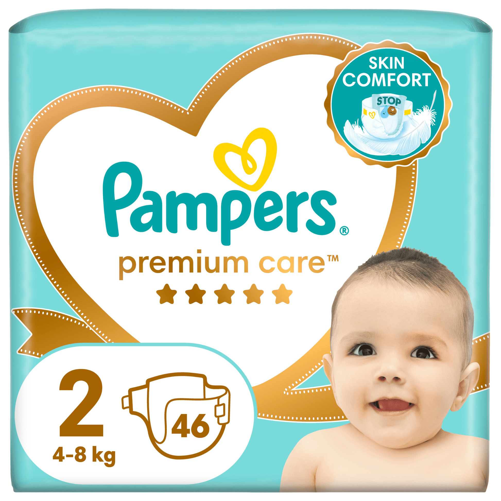 Wrap your baby in the arms of Pampers Premium Care, the softest comfort and the best protection of Pampers. The Premium Care diaper offers feather * softness and now has an absorbent upper layer with hearts, for an even softer feeling and treatment of the baby’s skin, which keeps away moisture.