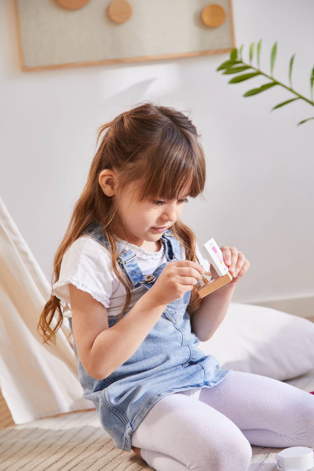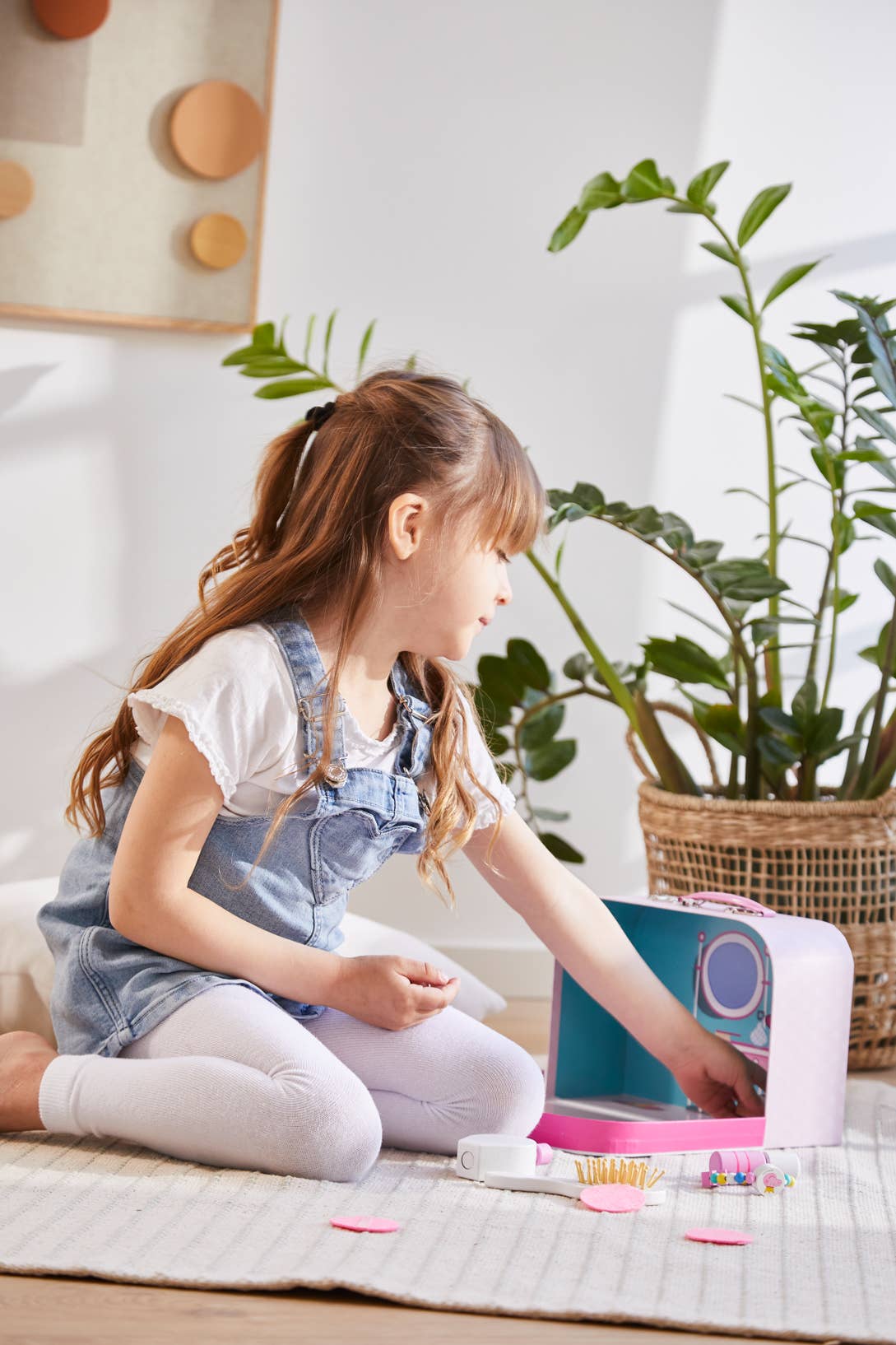 Here you get a cute little suitcase, with a beauty set in wood, which contains everything from a hairbrush, a bracelet to a small powder brush. The Peppa Pig beauty kit is everything your child needs for a decorative play, which can help stimulate the child's imagination, creativity, empathy and promote his social skills. Toys products are designed with care here in Denmark and with a focus on sustainability and high quality materials. Our products are designed and manufactured according to the philosophy “learn through play” and actively support and stimulate the child's imagination and learning development. The beauty set is everything your child needs for decorative games, which can help stimulate the child's imagination, creativity, empathy and promote his social skills. Barbo toys products are designed with care here in Denmark and with a focus on sustainability and high quality materials. Ages 3+.