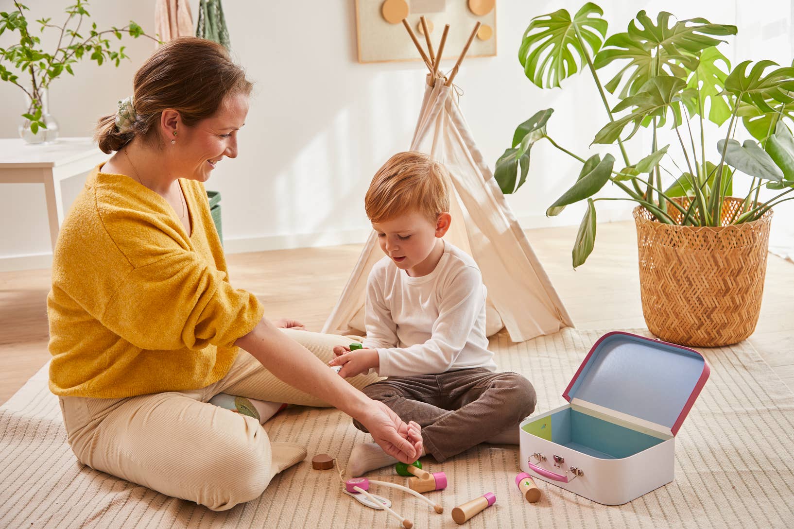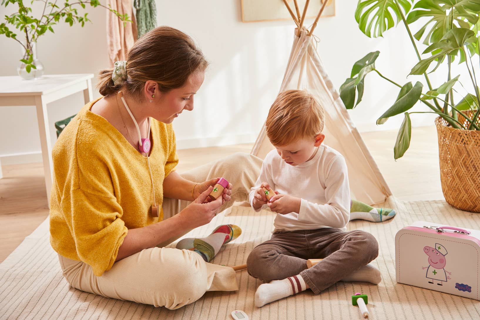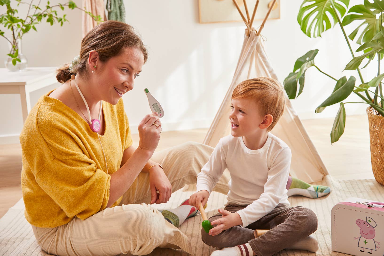 Peppa pig doctor set in a bag Play doctor with Peppa Pig. When children are allowed to play doctor, it gives them a fine understanding in showing care. Teddy bears, dolls, siblings and peers should probably be treated professionally when your little doctor picks up his/her suitcase. The suitcase has a practical handle and is easy to take with you everywhere, so the little doctor at home is always ready to help. Role play stimulates the child's imagination, creativity, empathy and promotes their social skills. At the same time, their fine motor skills are challenged when the patch needs to be applied and the bandage applied. Age 3+.