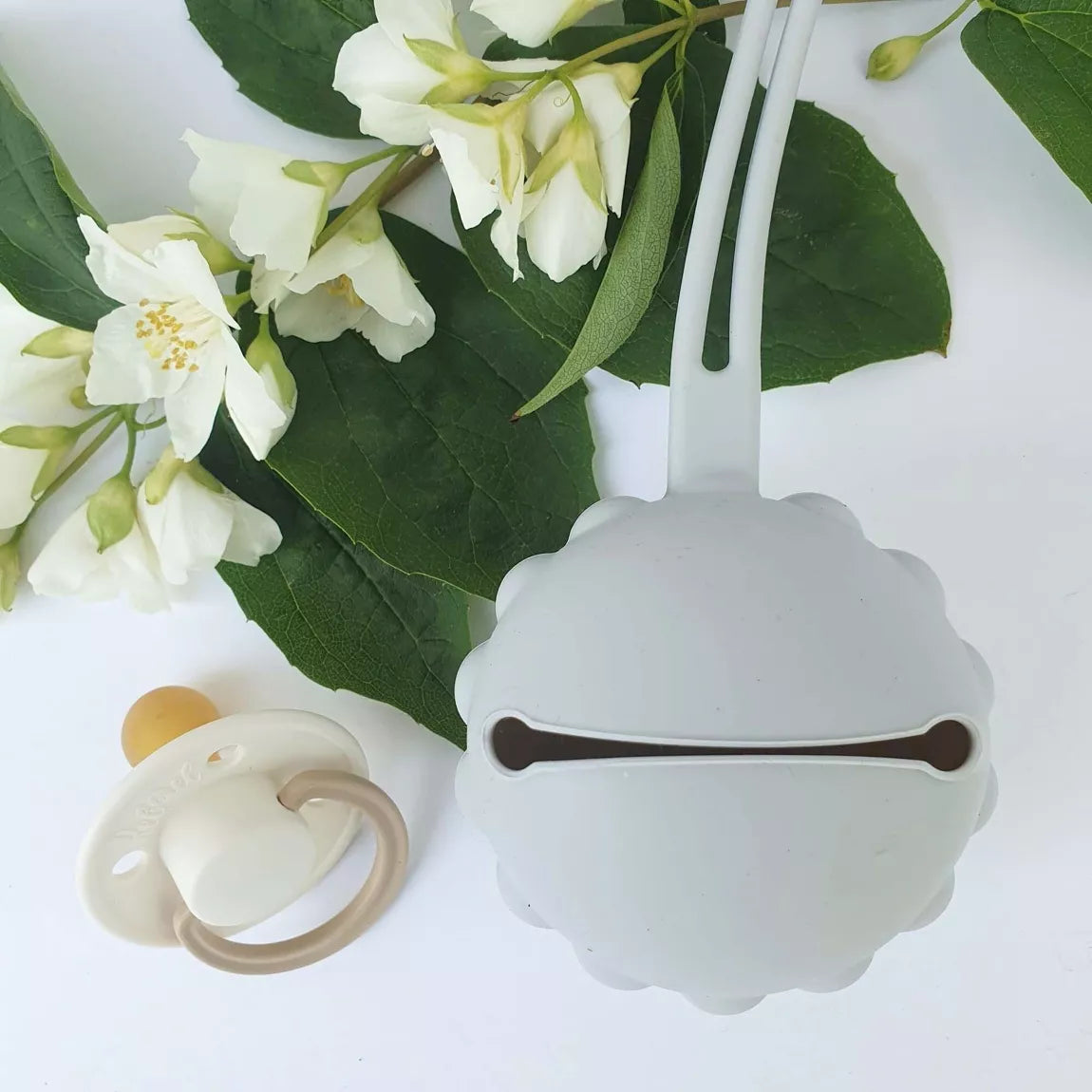 The pacifier holder from Summerville in 100% silicone keeps track of the pacifiers and protects them from dirt and dust.