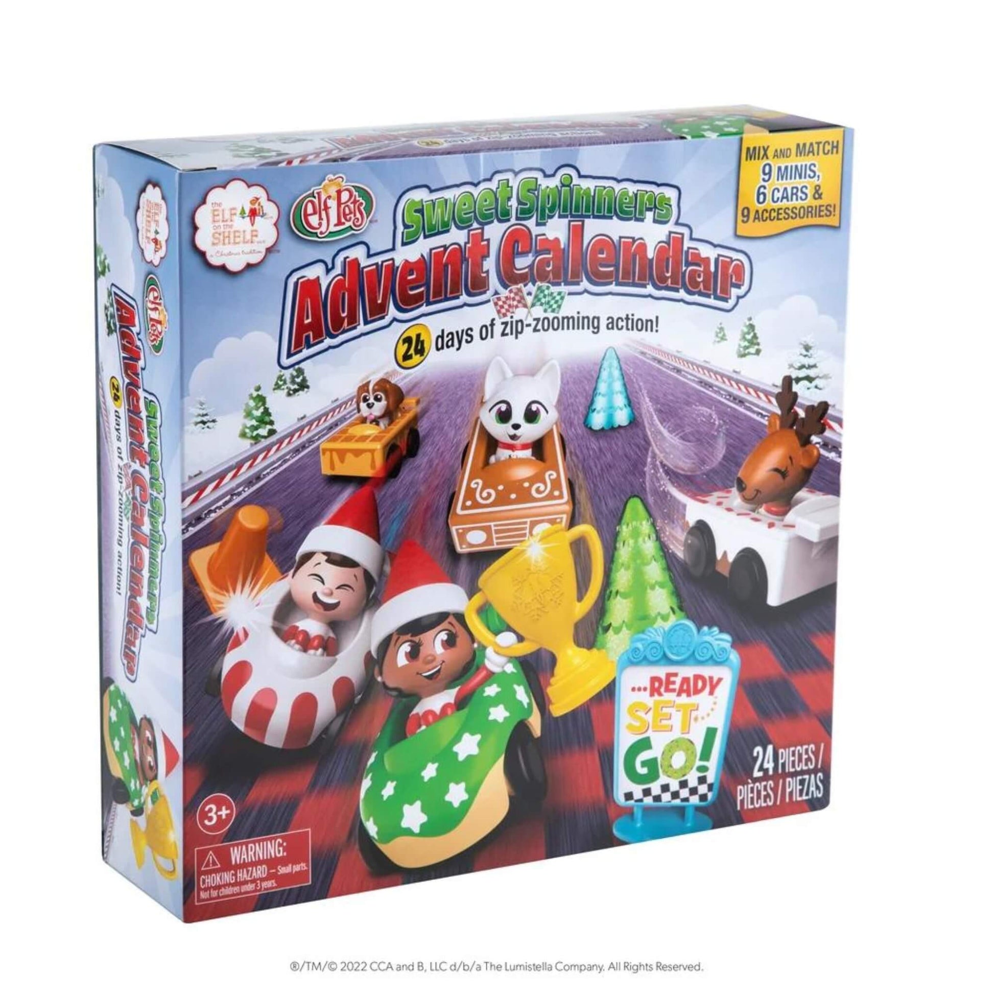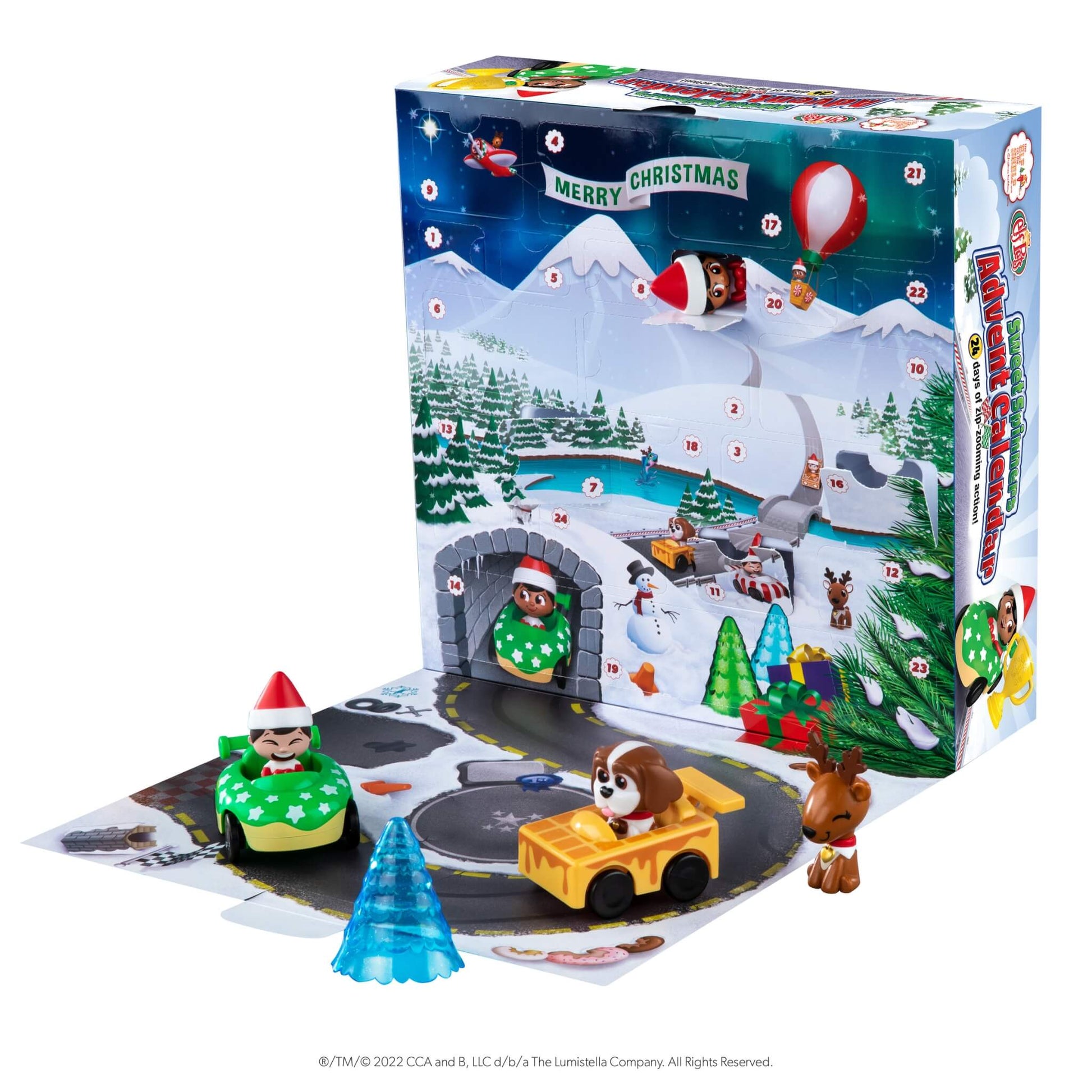 The race is on! Count down to Christmas with the sugar-spun fun of an Advent calendar filled with The Elf on the Shelf® and Elf Pets® playable mini figures and sweet rides straight from Santa’s North Pole. Includes: